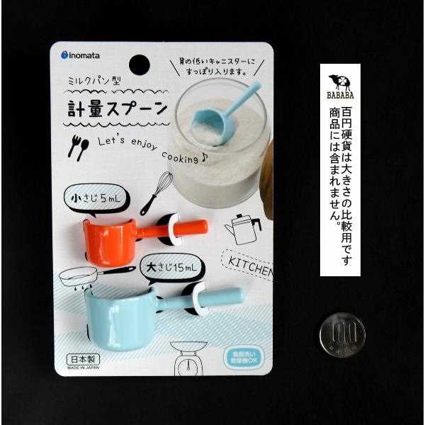 計量スプーン ミルクパン型 大さじ/小さじ ブルー&オレンジ 2個入 (100円ショッ...